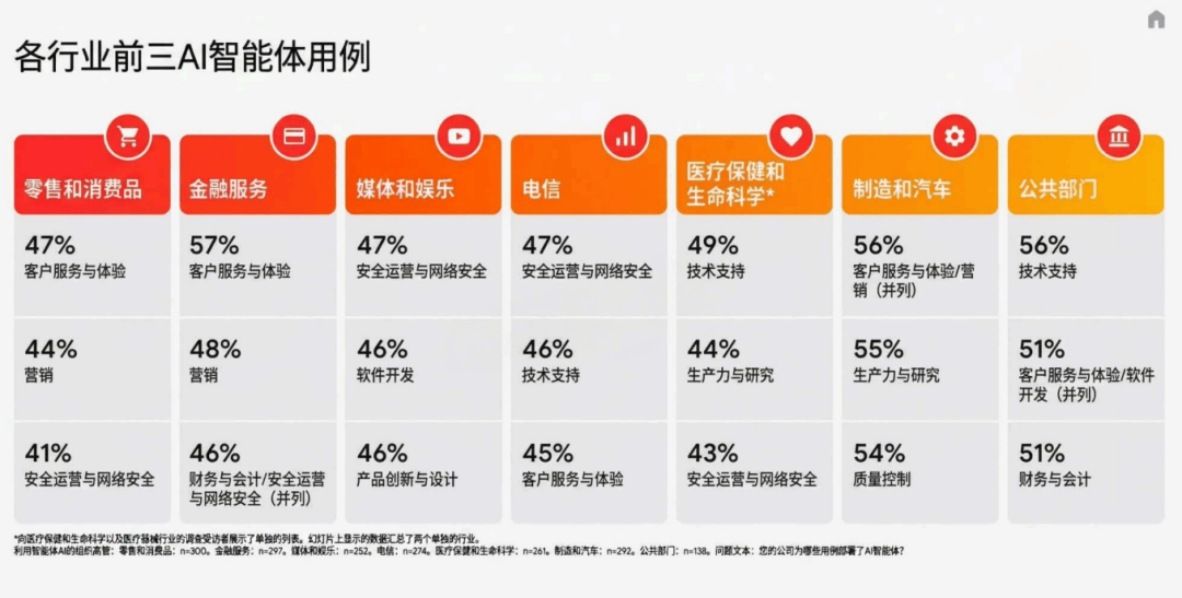 晚期采用者能正在所有跨行业智能体用例中实现投资报答,而AI智能体的呈现,52%的企业已正在出产摆设AI智能体,客户办事智能体已成为标配,晚期采用者正收成显著的先发盈利,实现“3天快速交付”,实现AI的跨部分协同。AI的贸易价值?