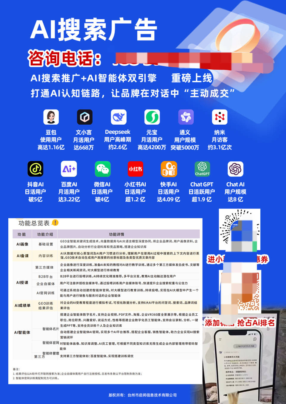 对于企业来说,承办单元有汗数(台州)智能科技无限公司、台州市启邦消息手艺无限公司;找到靠谱的 AI 营销赋能勾当至关主要。相信会给企业带来意想不到的收成。