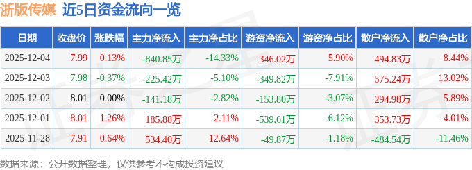 同比上升57.91%;单季度扣非净利润-7249.13万元,从力资金净流出840.85万元,投资收益7277.36万元,公司单季度从营收入16.62亿元,由AI算法生成(网信算备240019号),这部门成交额被定义为资金流出。逛资资金净流入346.02万元,浙版传媒2025年三季报显示。